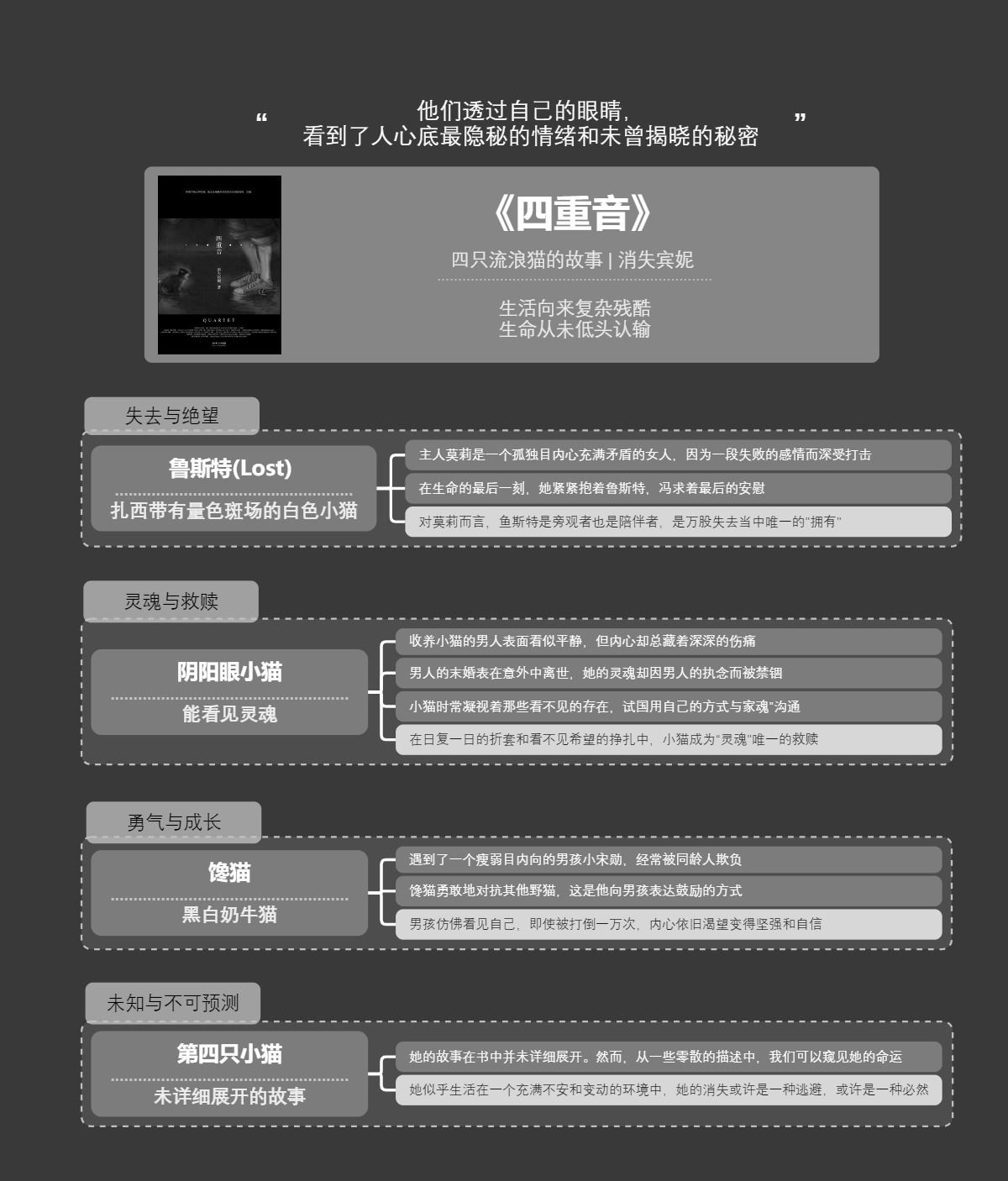 《四重音》 作者:我只是个小配角 更新时间:2025年03月17日 生活向来复杂残酷,生命从未低头认输。 本文中的思维导图是由图形天下思维导图软件制作而成,点击上面思维导图图片可以直接打开图形天下思维导图软件,能够对“《四重音》”思维导图进行美化调整。 作者其他作品 用户购买行为分析 2025年03月17日 图行天下——思维导图快捷键攻略 2025年03月17日 脑图复盘记 2025年03月17日 绘画心得 2025年03月17日 smart原则 2025年03月17日 DeepSeek大事记 2025年03月17日