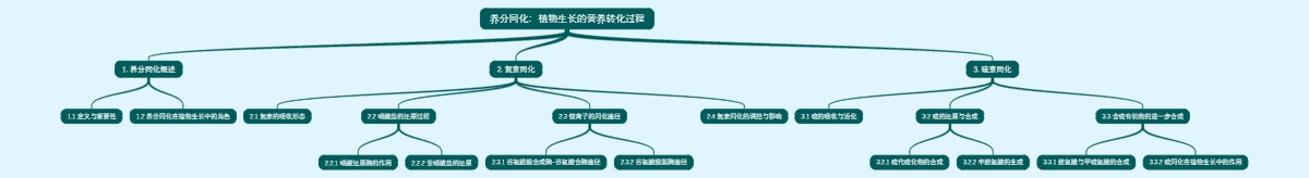 本文中的思维导图是由图形天下思维导图软件制作而成,点击上面思维导图图片可以直接打开图形天下思维导图软件,能够对“养分同化:植物生长的营养转化过程”思维导图进行美化调整。