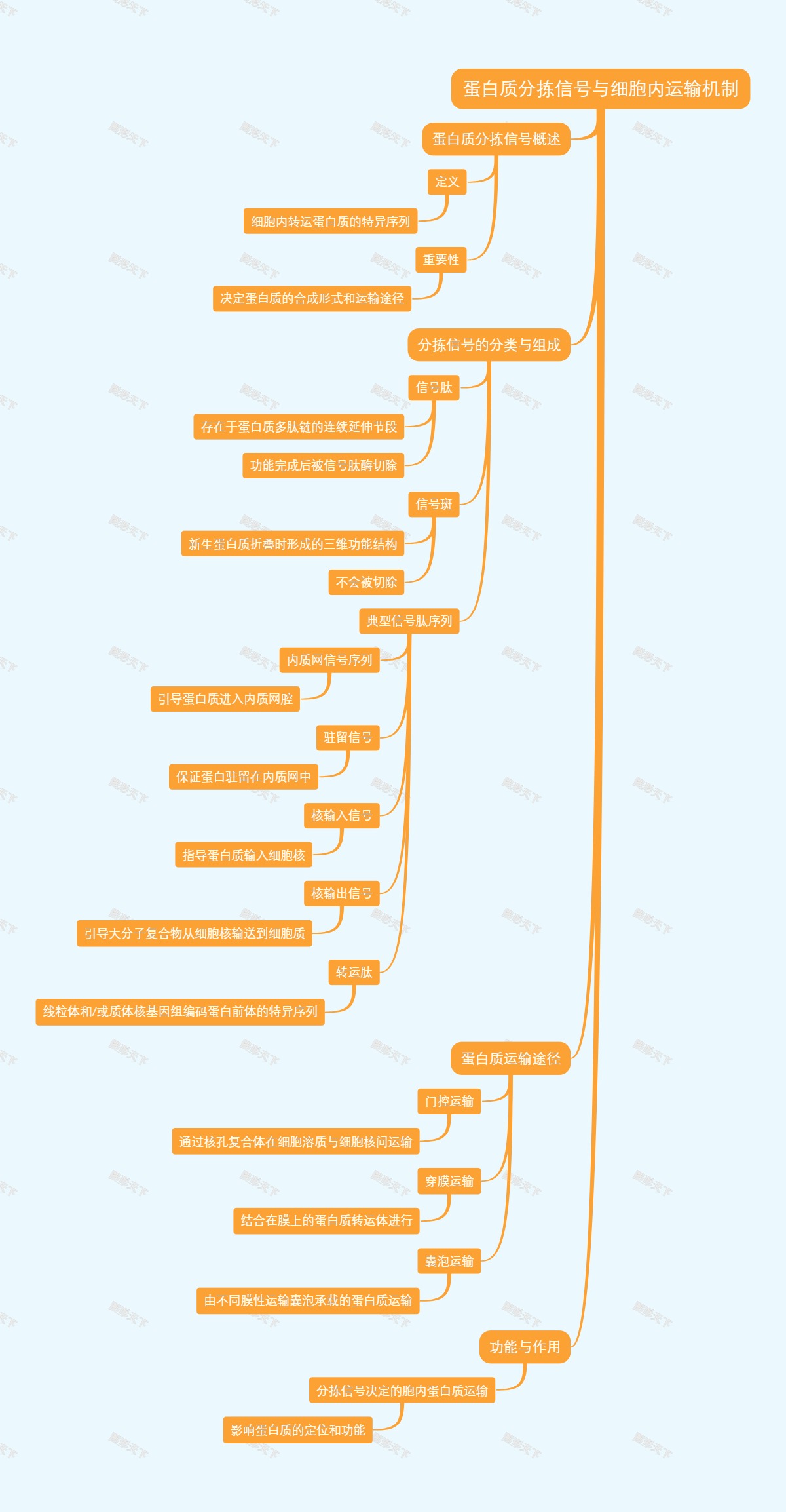 本导图详细阐述了蛋白质分拣信号的概念、分类、典型序列以及细胞内蛋白质的运输途径,旨在为大众提供对细胞内蛋白质运输机制的深入理解。