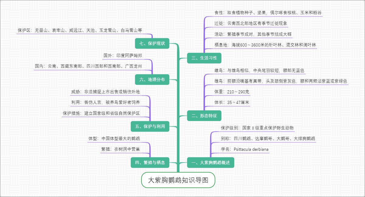 本文中的思维导图是由图形天下思维导图软件制作而成,点击上面思维导图图片可以直接打开图形天下思维导图软件,能够对“大紫胸鹦鹉知识导图”思维导图进行美化调整。