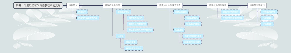 本文中的思维导图是由图形天下思维导图软件制作而成,点击上面思维导图图片可以直接打开图形天下思维导图软件,能够对“辨喜:印度近代哲学与宗教改革的光辉”思维导图进行美化调整。