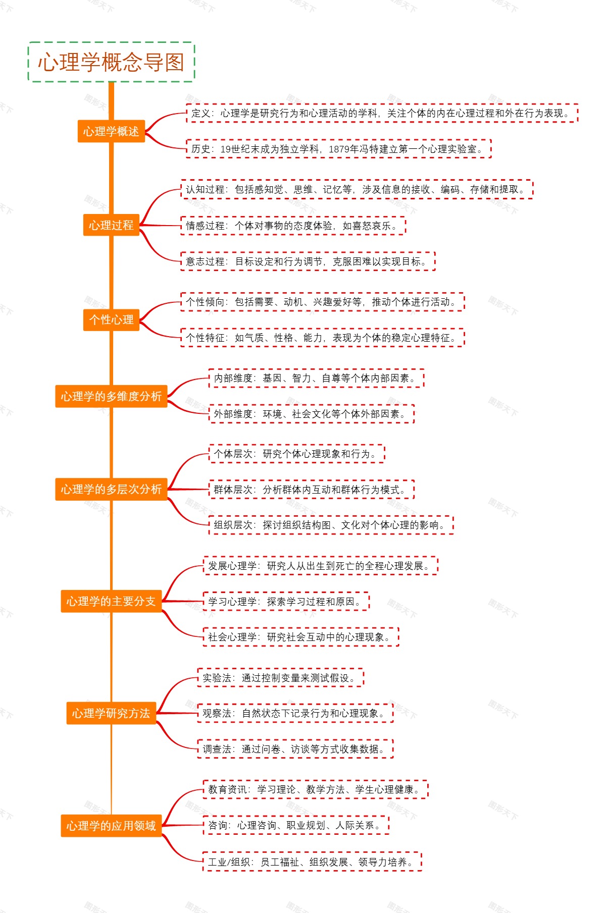 本导图旨在通过多层次、多维度的分析,为大众读者提供一个清晰的心理学概念框架,以便更好地理解人类行为和心理活动的复杂性。