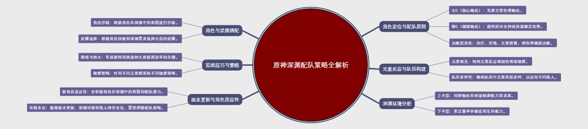 本文中的思维导图是由图形天下思维导图软件制作而成,点击上面思维导图图片可以直接打开图形天下思维导图软件,能够对“原神深渊配队策略全解析”思维导图进行美化调整。