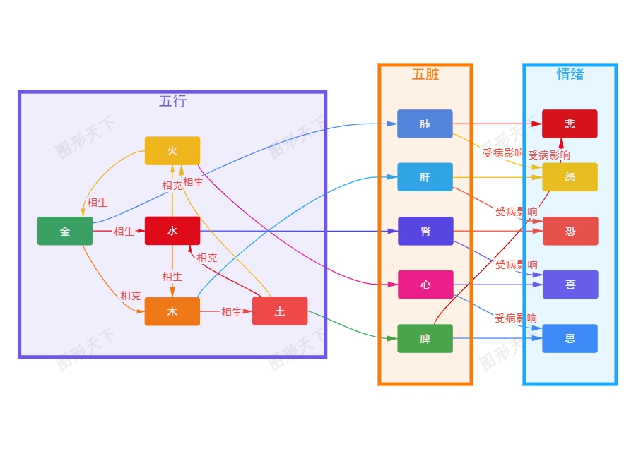 在中医的宏伟理论中,五行、五脏与情绪之间的关系,仿佛是一场永不停歇的舞蹈,相互影响,共同演绎着生命的韵律。