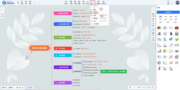 在思维导图的编辑过程中,图片的添加方式灵活多变:
