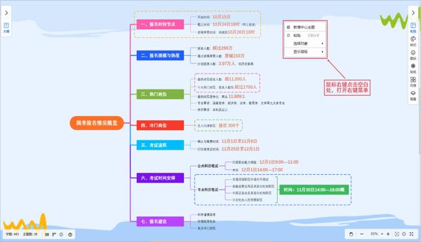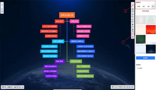 1.选定位置:首先,在思维导图中精准选中希望添加图片的主题节点,或者也可以直接点击编辑界面的空白区域,添加图片;