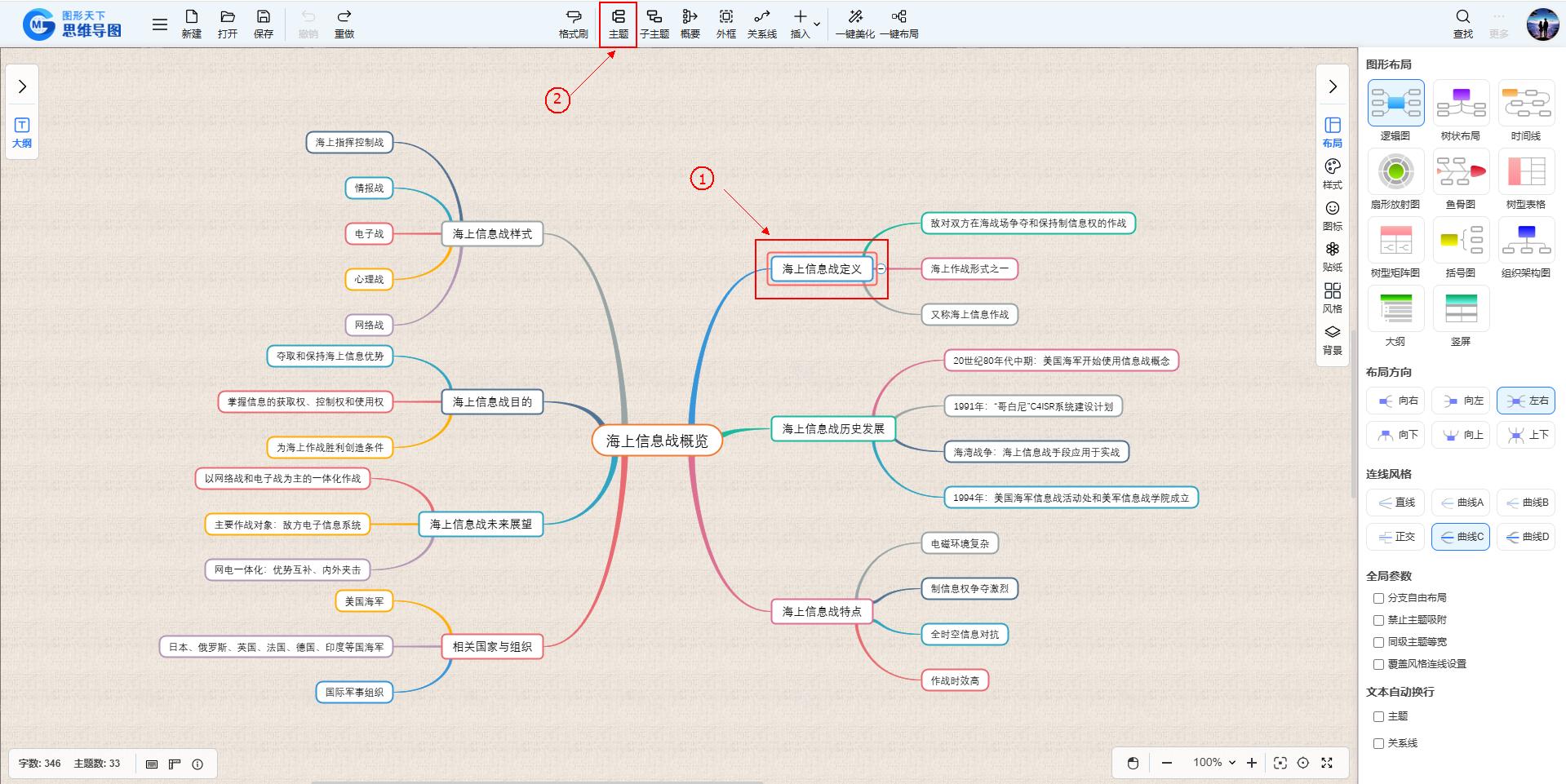 以下介绍图形天下思维导图工具添加主题的几种方法。