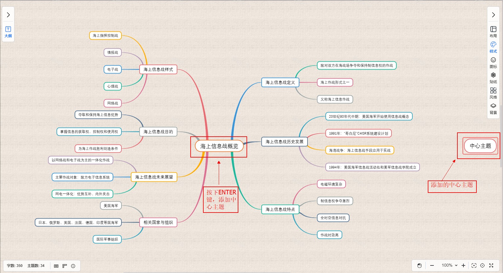 如果您选中的是中心主题,按下“Enter”键则可在图中空白处生成一个新的中心主题。
