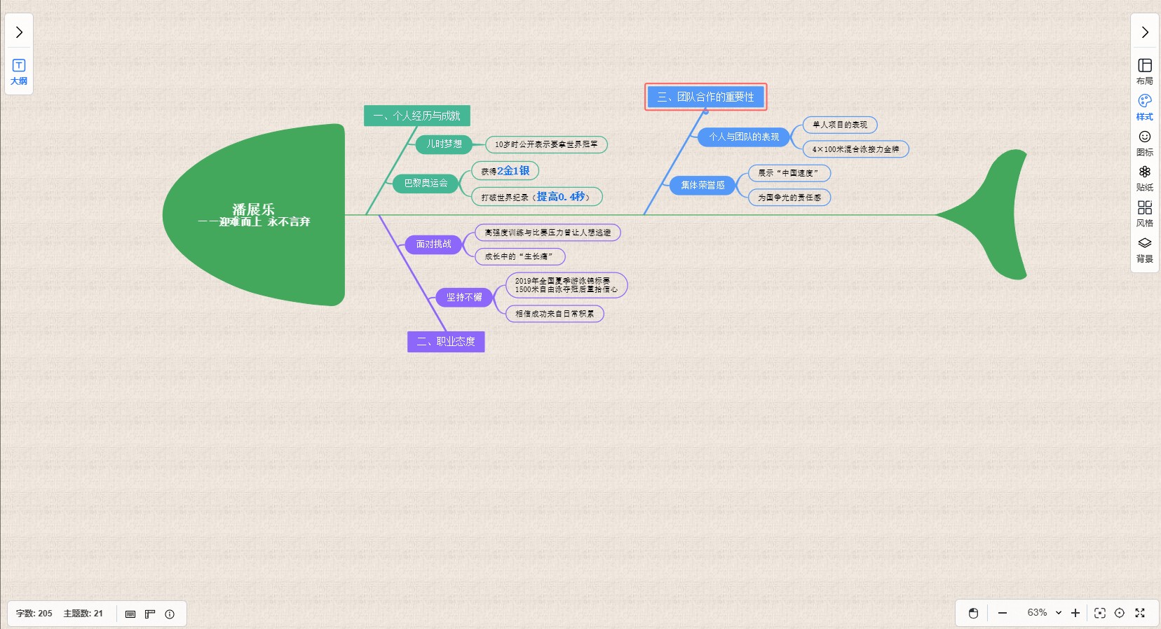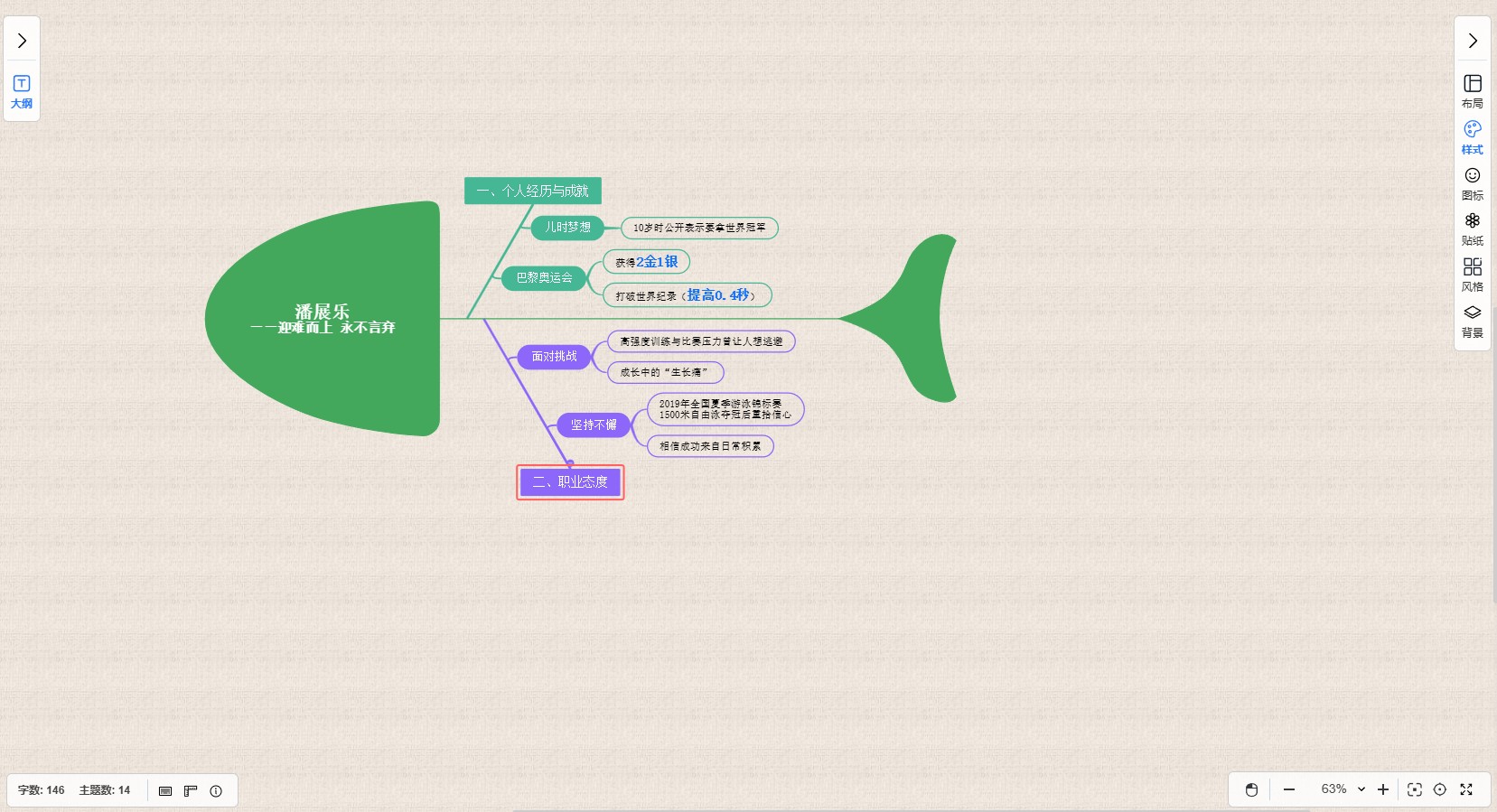 同样,在思维导图窗口中,使用鼠标左键点击并选中你想要剪切的主题、子主题、概要、外框等元素。