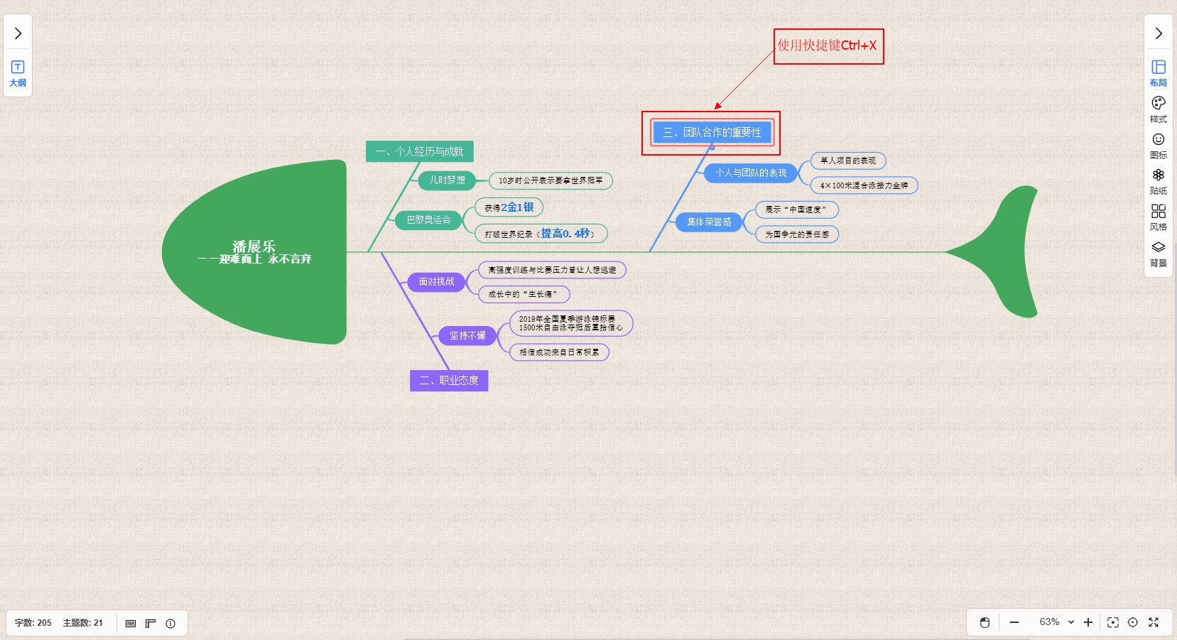 当需要调整思维导图中元素的布局,将某个元素移动到其他位置时,可以使用剪切功能。