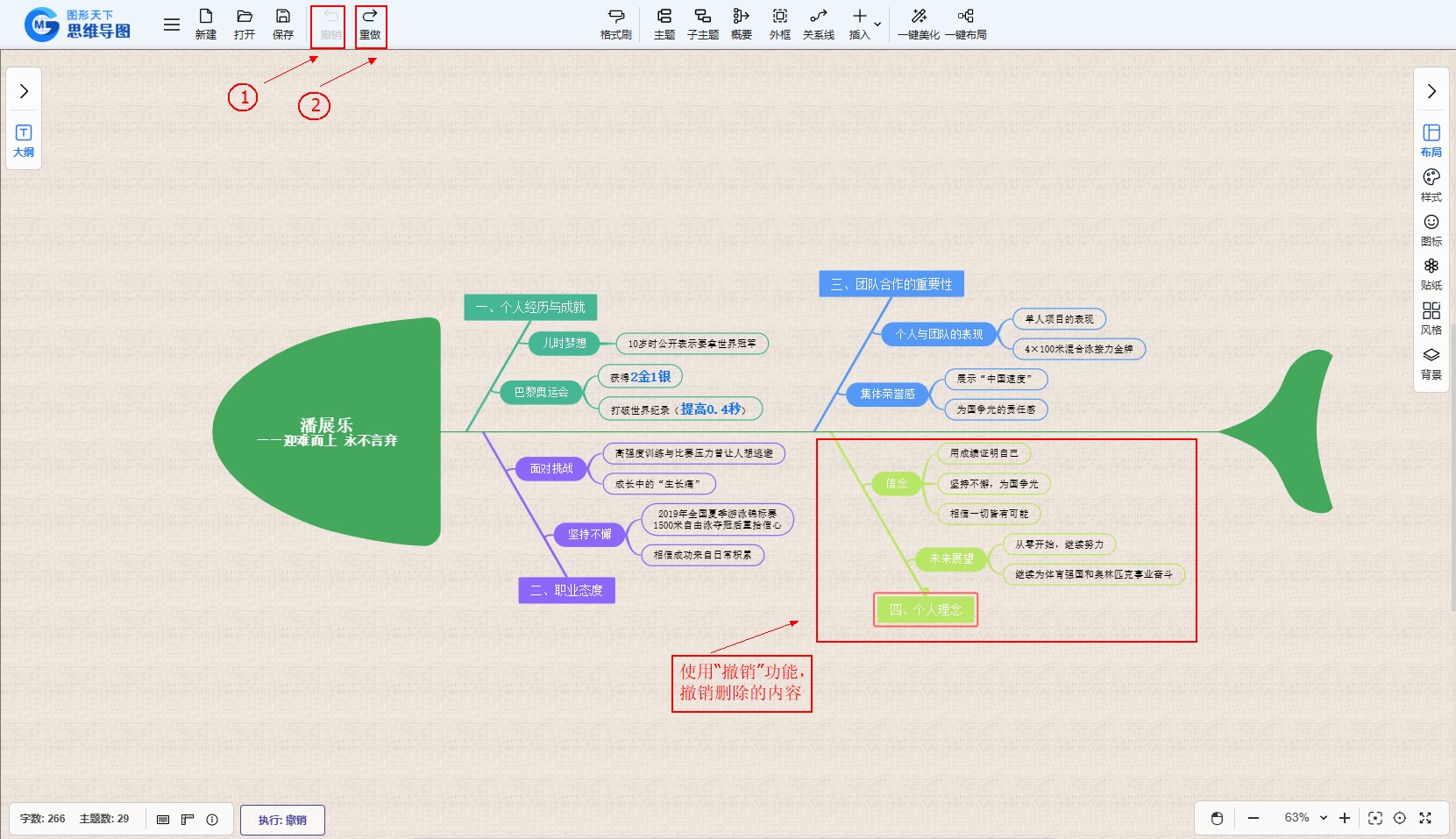 在图形天下思维导图中,重做是指撤销之前的撤销操作,用于恢复到撤销之前的操作状态。