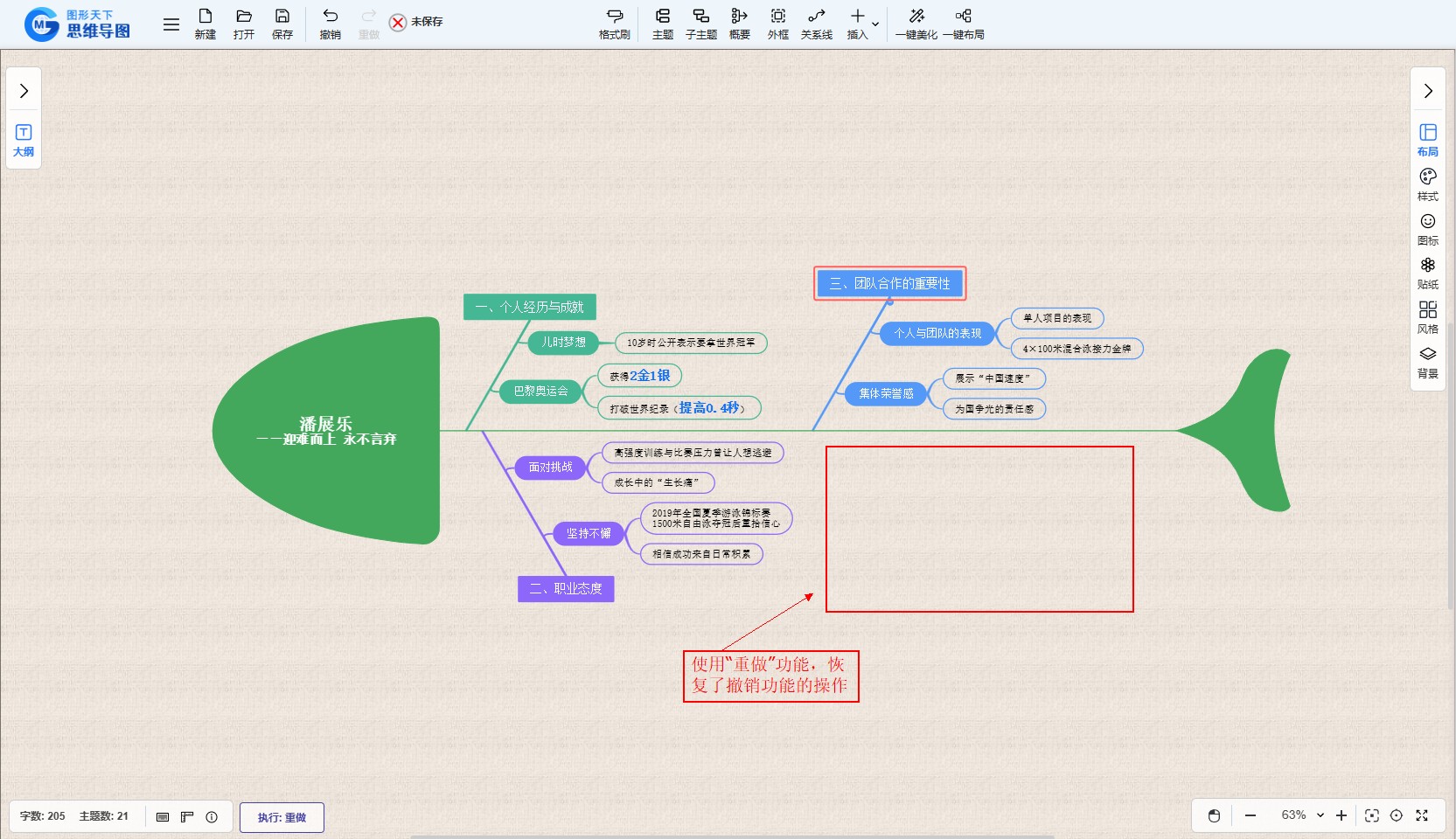 当用户对思维导图进行了误操作或想要回到撤销之前的某个编辑状态时,可以使用重做功能。