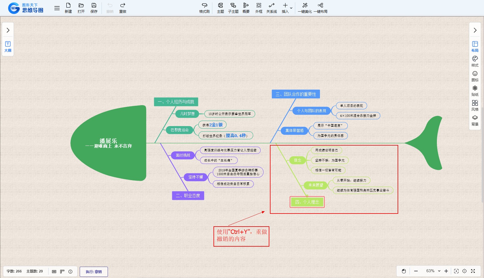 除了使用功能按钮外,图形天下思维导图还支持通过快捷键来执行重做操作。通过按下组合键“Ctrl+Y”,用户可以快速地恢复到上一次撤销的操作状态。